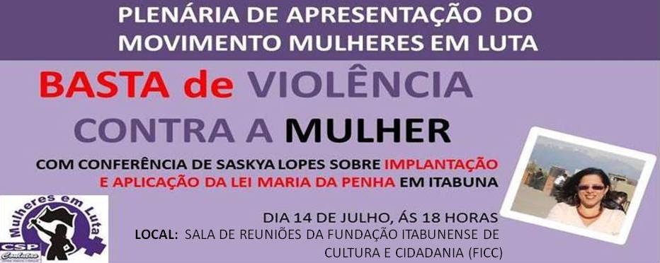 Em Itabuna, o MML promove nesta segunda-feira (14) uma atividade de apresentação, com conferência da Prof.ª Msc. Saskya Miranda Lopes, que irá debater implantação e aplicação da Lei Maria da Penha em Itabuna, Bahia. Saiba mais aqui