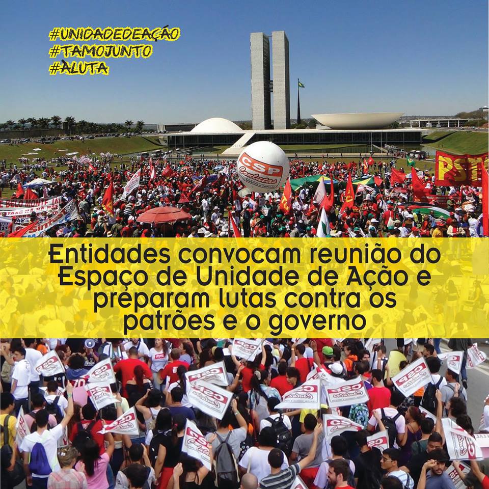 Com o objetivo de construir uma agenda de lutas unificada para 2015, entidades que compõe o Espaço de Unidade de Ação convocaram, para o dia 30 de janeiro de 2015, a primeira reunião do ano. O Espaço é composto por diversas entidades de movimentos sindicais, sociais e populares, entre elas o ANDES-SN e a CSP-Conlutas.