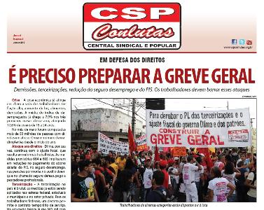 A Secretaria Executiva Nacional (SEN) da CSP-Conlutas lançou, nesse mês de julho, um jornal especial que aponta a necessidade da unidade das diferentes categorias de trabalhadores do serviço público e privado para a preparação de uma greve geral no país. “É hora das centrais governistas romperem com a sustentação que vem dando a essa política nefasta do governo Dilma e defenderem os direitos da classe trabalhadora”, aponta em texto.