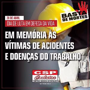 Diante desses números, o Setorial de Saúde do Trabalhador da CSP-Conlutas, central sindical à qual o ANDES-SN é filiado, orienta a todas as entidades que compõem a Central a realizarem debates, atos e atividades em alusão à data e impulsionar o 28 de abril como um importante dia de luta. O Setorial elaborou um material para ser trabalhado com as bases e entidades filiadas com o intuito de conscientizar o trabalhador para a importância de debater este tema. São eixos de luta: a defesa da saúde do trabalhador, a batalha contra a terceirização, na forma do PLC 30⁄2015 (antigo PL 4330), que legaliza a terceirização de todas as áreas de trabalho na iniciativa privada, tanto para atividade meio quanto fim; contra a privatização e a Reforma da Previdência; a defesa da organização de base, entre outros.