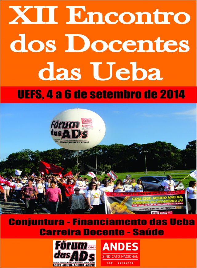 O XII Encontro dos Docentes das Universidades Estaduais das Universidades Estaduais da Bahia ocorrerá entre os dias 4 e 6 de Setembro, na sede da ADUFS, em Feira de Santana. Realizado a cada dois anos pelo Fórum das ADs, o encontro tem o objetivo de fortalecer e aprofundar o debate das pautas docentes e da defesa da educação pública, gratuita e de qualidade socialmente referenciada.