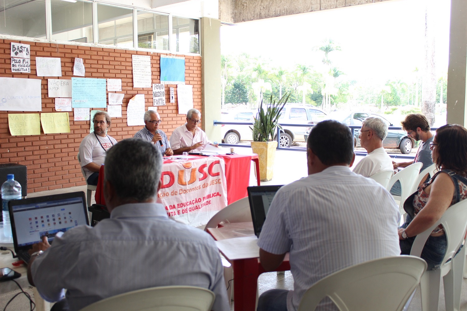 Em Assembleia realizada nesta terça-feira (19), os docentes da UESC discutiram o caderno de texto do 35º Congresso Nacional do ANDES-SN, que acontecerá entre os dias 25 e 30 de Janeiro, em Curitiba. O debate na assembleia garante que os delegados participantes do congresso represente as posições encaminhadas junto a base. O Congresso terá como tema “Em defesa da educação pública e gratuita e dos direitos dos trabalhadores” e definirá o plano de lutas do Sindicato Nacional para 2016. Ao longo da semana publicaremos uma série de matérias para informar nossos associados os trabalhos do ANDES-SN.