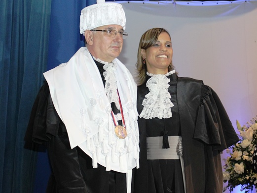 foto: Reitor, José Bites, e vice-reitora, Carla Liane, durante a posse - promessa de democracia e autonomia