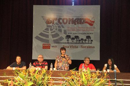 Alexandre Galvão, secretário geral do ANDES-SN, fez a leitura da Carta de Boa Vista, que contextualizou o 61º Conad como uma síntese do amplo debate realizado nestes dias e dos desafios da categoria para o próximo período, destacando a consígnia aprovada: “Fora Temer, contra o ajuste fiscal e a retirada dos direitos dos trabalhadores e trabalhadoras e cortes nas políticas sociais. Pela auditoria da dívida pública. Contra a política de conciliação de classe. Rumo à greve geral!”.
