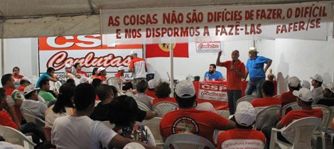 Foram cerca de 200 agricultores familiares e assalariados rurais, de 8 estados e 63 cidades do Nordeste Brasileiro que participaram do primeiro dia do encontro e fizeram do evento um sucesso. “Amanhã, nos grupos de trabalho, vamos nos preparar para que quando cada companheiro voltar para a sua base possa levar consigo a determinação de mudar a realidade desse povo sofrido que planta no nosso Nordeste e muitas ferramentas para usar não no roçado, mas no terreno do enfrentamento e das lutas contra o agronegócio e o governo”, opinou Paulo Gico, Presidente da FAFER/SE e membro da direção da CONAFER e CSP Conlutas. Amanhã o dia começa com os grupos de trabalho que serão divididos por estados. Cada grupo de trabalho vai discutir a situação em que se encontram as suas categorias, as campanhas de lutas que deveremos tocar e as medidas
